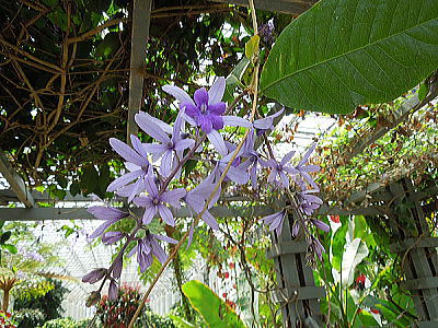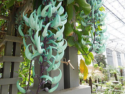 ヒスイカズラ・・フィリピン、ルソン島に自生する熱帯つる性植物です。藤のように花穂を長く下垂させ、長さ7.5cmほどの