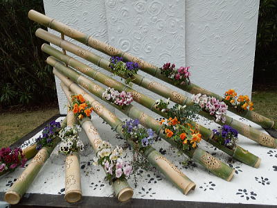 シンガポール植物園との連携に合わせ、赤色の蘭3品種を使い、