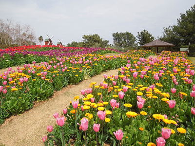 | 大地の虹・・季節の花が咲き乱れます。 チューリップ、パンジーが最高の見頃です |