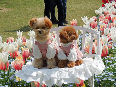 | 可愛いわんちゃん、おりこうさんです 飼い主さんと一緒にパチリ |