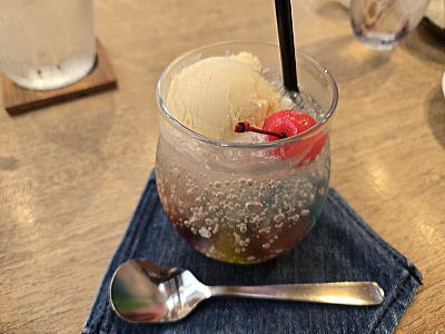 私はヒラメ5貫にぎり、1,200円とメロンソーダ |