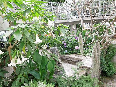 | ひかげのにわ・・地球には、日陰や室内でもすくすく育つ植物があります。室内緑化にも適した低照度で育つ植物が展示 |