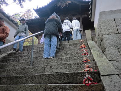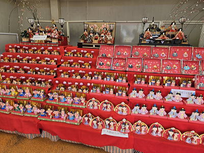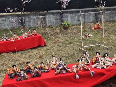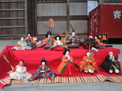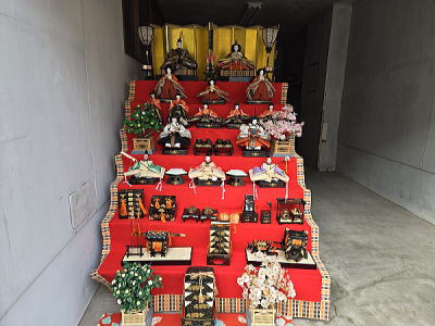 | 玄関上に一列に並ぶお雛さまがお見送りしてくれました |