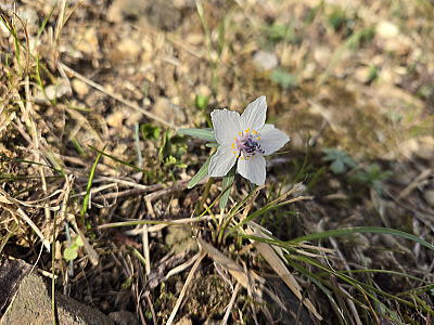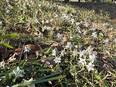 キンポウゲの小球根植物で、雑木林や山すその、半日陰のところに群生し、節分の頃に直径2㎝程の可憐な花を一面に咲かせます。
