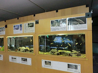 | 淡水魚 川にいる魚の水槽が並んでいます |