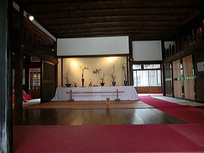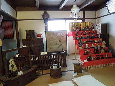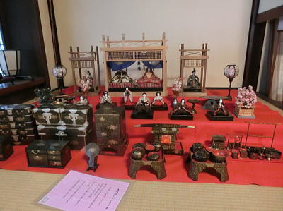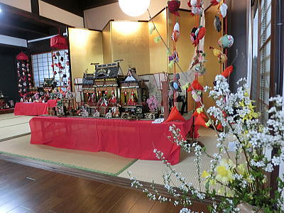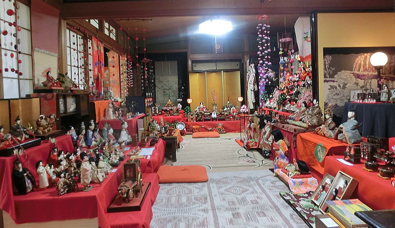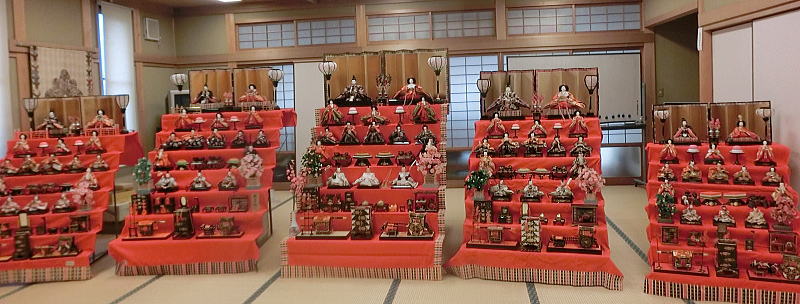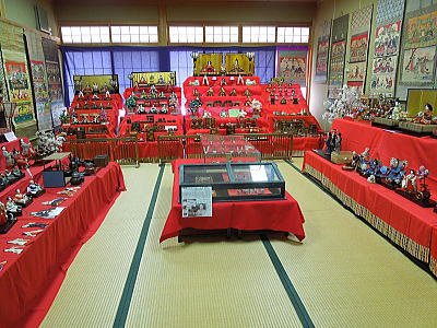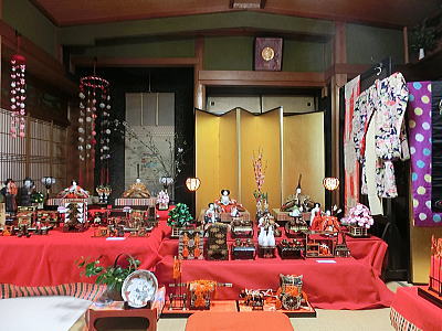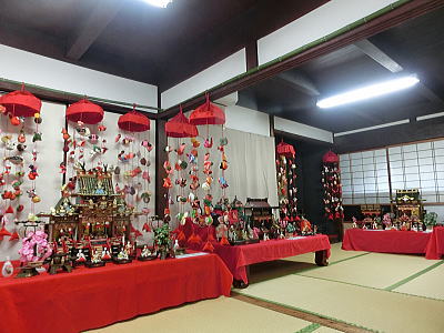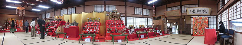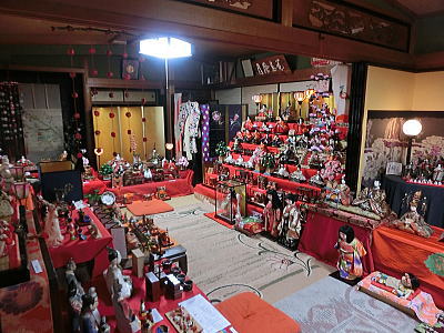 56畳の大広間にお雛さまが展示されています。無料です |