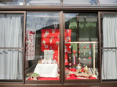 | お店前の手作り雛 |