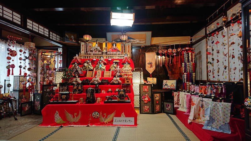 ‟ひな”の店内に飾られたお雛さま