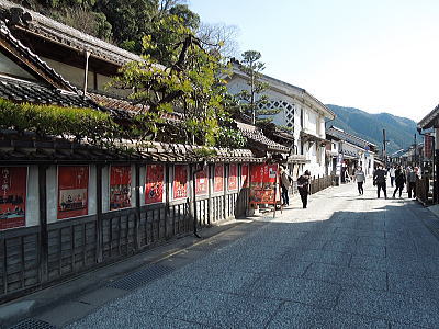 本瓦葺、白壁、なまこ壁、民家、柳並木の掘割が見事に調和しています。美術館、考古館などが立ち並ぶ