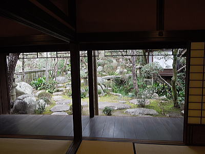 座敷から庭を、明治時代には、裏山から絶えず湧き水が