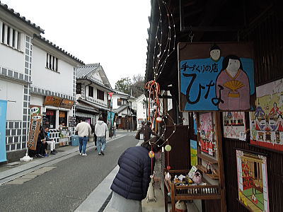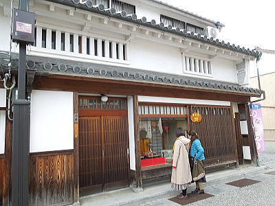 伝統的建造物保存地区として倉敷を代表する観光地です。その美観地区界隈にお雛さまが展示されています。 |