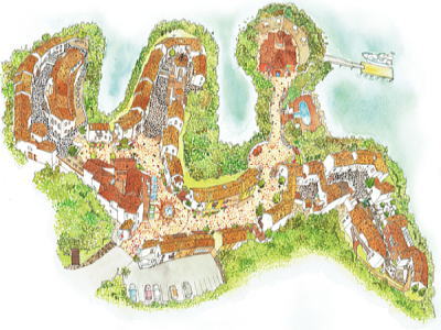 サルジニアゾーンの建物は土壁が屋内・屋外を問わず