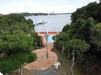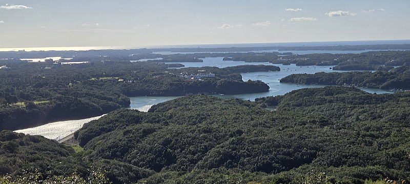| 横山カフェテラスから、英虞湾をちょっとズームで・・・常緑広葉樹の木々と波穏やかな海岸線が織り成すアート |