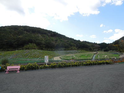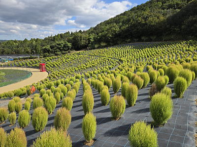 手前のコキアは、緑から紅葉が始まったような薄茶色が混ざり始めておりこれからが鮮やかに色づく時期には、ちょっと早かったようです |