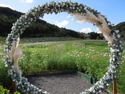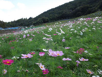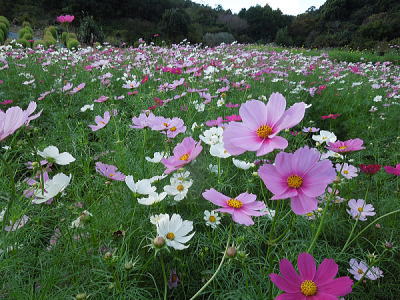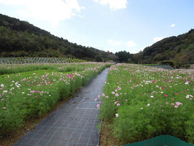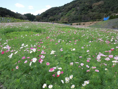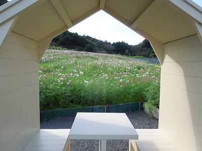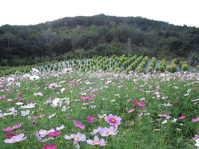 | コキアだけだと思っていたが、コスモス畑も広がっています |