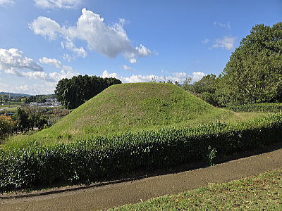 7世紀末から8世紀初頭にかけて築造された終末期古墳で、直径23m(下段)及び18m(上段)、高さ5mの二段式の円墳です。