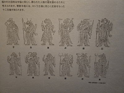 十二支をあらわした獣頭人身像が描かれていることです。 |