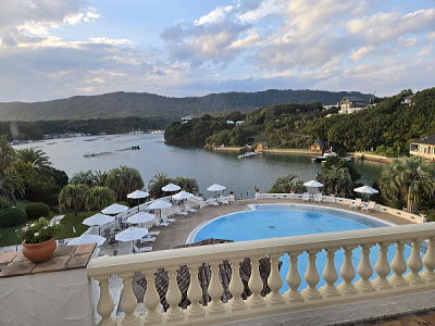 英虞湾を一望するスパニッシュミッション様式のホテルです |