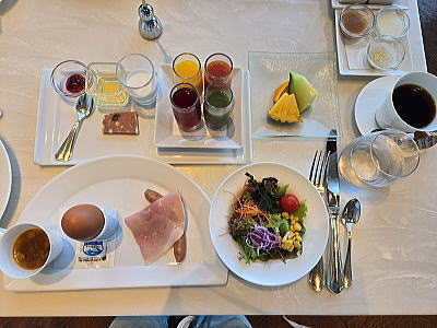 4種類のプティドリンク&ヨーグルト・サラダ・フルーツ3種・珈琲 |