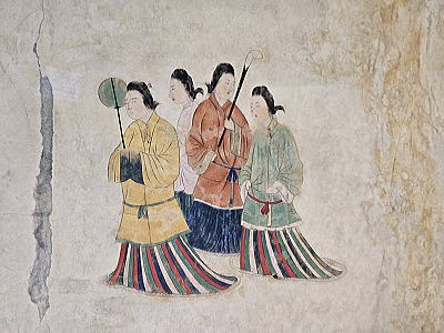 石室の壁画が有名で、特に色彩鮮やかな西壁の女子群像は、歴史の教科書などにも紹介されています