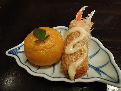 蟹淡雪蟹味噌鍋:メレンゲの泡と味噌味のお鍋です。豆乳、カニ味噌、お味噌を合わせて作ったお出汁。