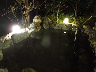 外階段を下りると露天風呂。小さめながらもお湯も適温 |