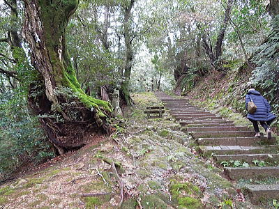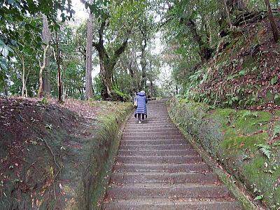 石段の先に人影が・・作業をしている人に聞いて見ると