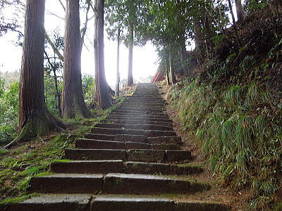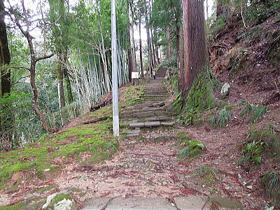 石段上に建物らしきものが見えて来ました。温泉寺のよう