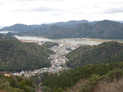・円山川、右側に楽々浦湾、左側は日本海 |