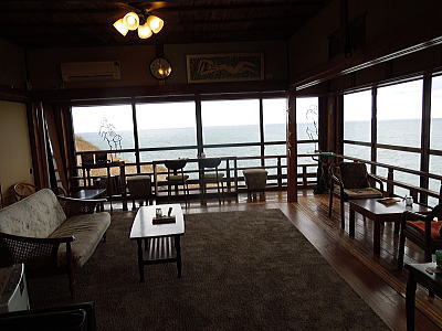 カウンター席、テーブル席、ソファ席、座敷があり席間はゆったり どの席からも海が見えます