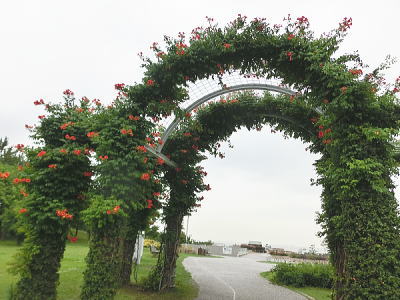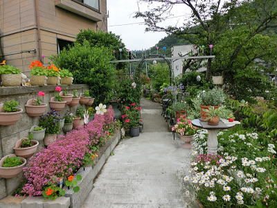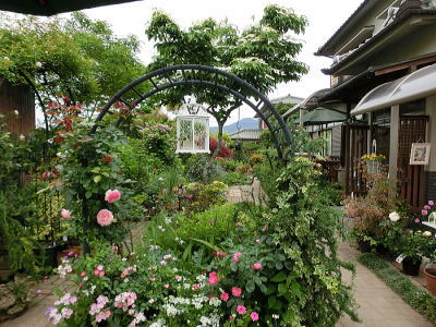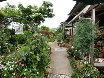 空中通路から花と緑のある暮らし(日本庭園)を