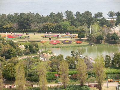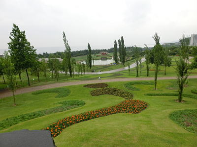 空中通路から・・癒しの庭を見下ろす。