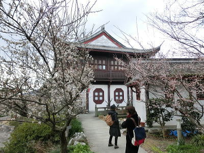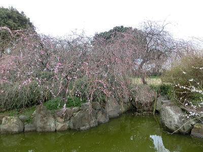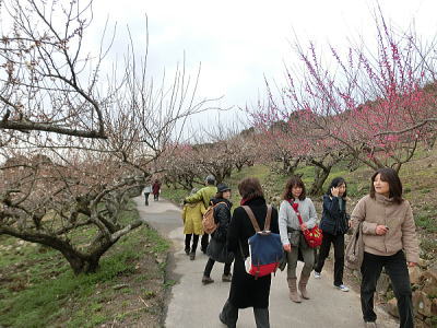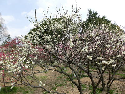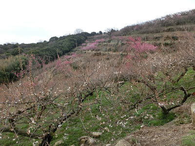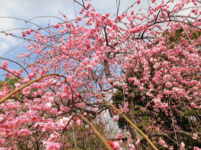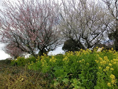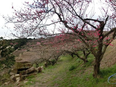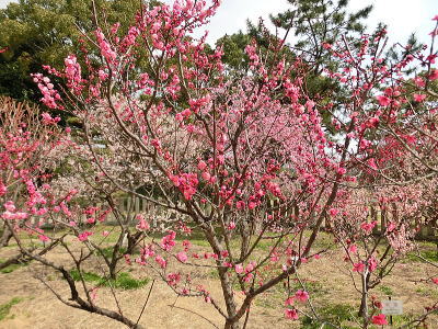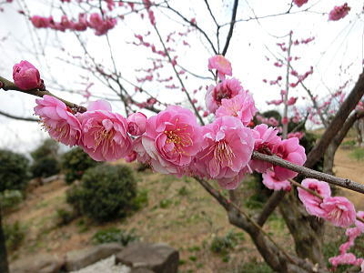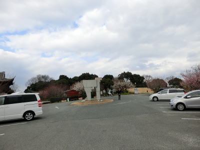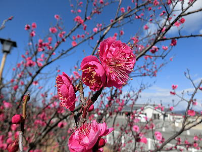 駐車場前は紅梅が八分咲き 風に乗って香しい匂いが |