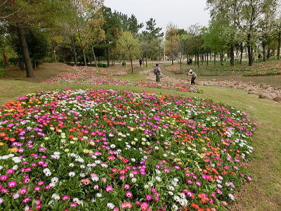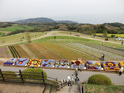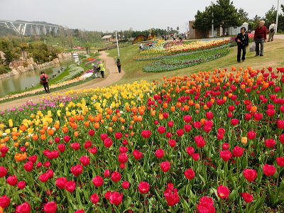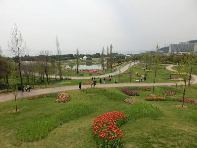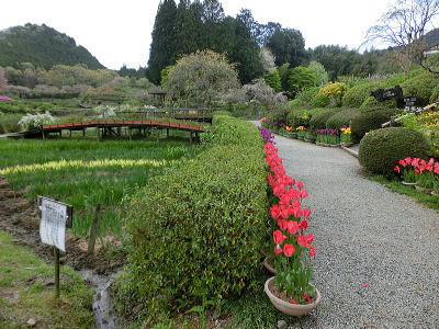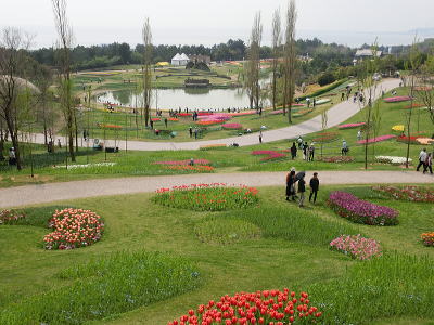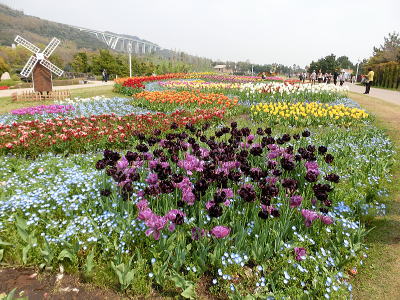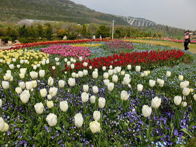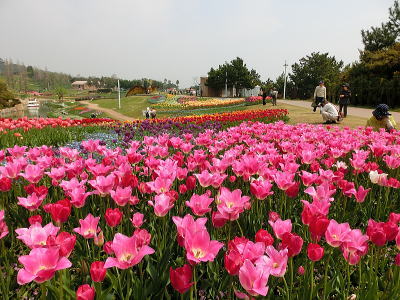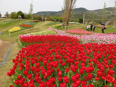 左側にはチューリップ畑
