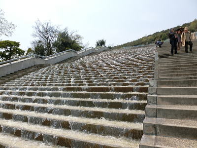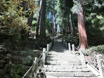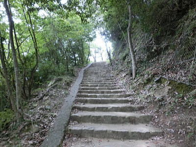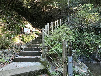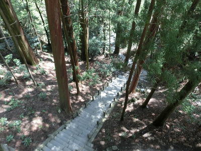 玄武洞ミュージアム前駐車場から石段を