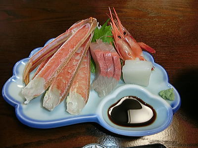 カニ刺し 寒ブリ イカ 甘エビのお刺身
