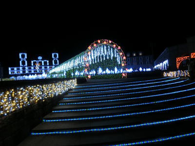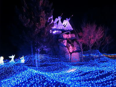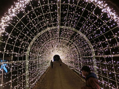 2015年12月8日 神戸イルミナージュに行ってきました。神戸フルーツ・フラワーパークは北神戸の豊かな自然の中で中世ヨーロッパのルネッサンス様式の美しい建物や庭園を中心に数多くの施設が点在する「花と果実のテーマパーク」です。そのパーク内で平成27年10月30日(金)~平成28年1月31日(日)の94日間、神戸イルミナージュが開催されています。5回目となる今年のテーマは「白亜の世界と幻想の世界へ」。会場内14のエリアで、おとぎ話の世界や幻想的な白銀の世界が広がります。 |