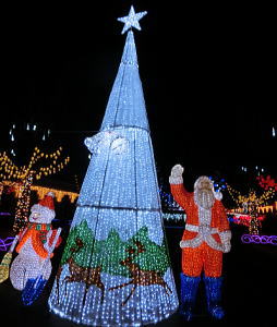 シンボルのワンダーランドツリーとサンタクロースが
