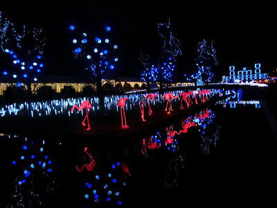 HIKARIのアニマルランド 水に写るフラミンゴたち