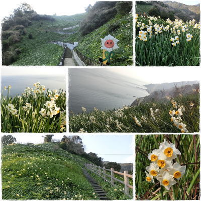 南斜面にあり約7haに約500万本の水仙が群落を作っています。
