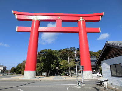 | 一度、行ってみたいなー、と思っていたのが、この「おのころ島神社です。一際目立つ赤い鳥居が見えてきました。おのころ神社・・古事記・日本書紀によれば、神代の昔国土創世の時『伊弉諾命(イザナギノミコト)』『伊弉冉命(イザナミノミコト)』の二神により創られた日本発祥 - 国生みの聖地 - それが『自凝島神社(おのころしま)』とされています。 |