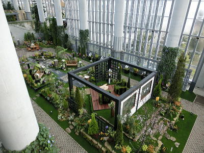 植物と光、水、アート等多様なエレメントの
