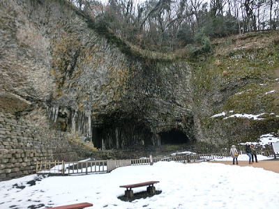 玄武洞はかって採石場でした。規則正しい割れ目のある玄武岩は石材に適しており、