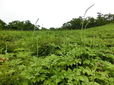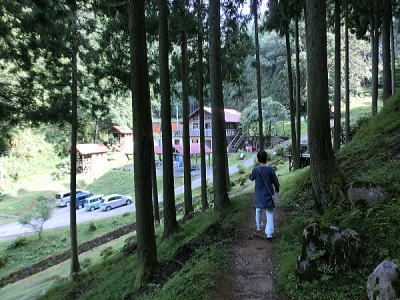 杉の林の中へと入って行きます。 |