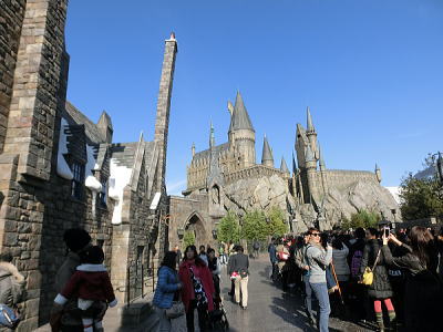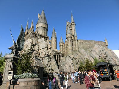再現された荘厳なホグワーツ城。 重厚な城門をくぐり、
