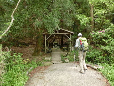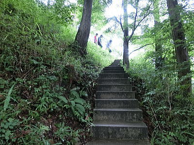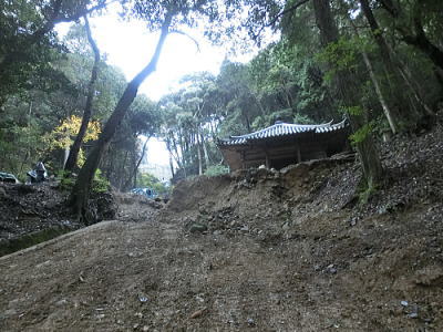 休憩所へと・・右側の塔は昨年掃除をした経蔵