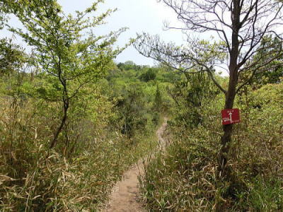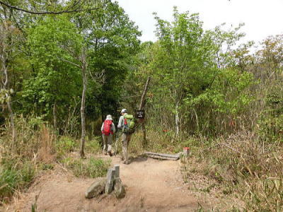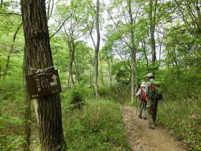 鏡岩の看板 どこが鏡??コースの所々に見られる