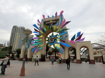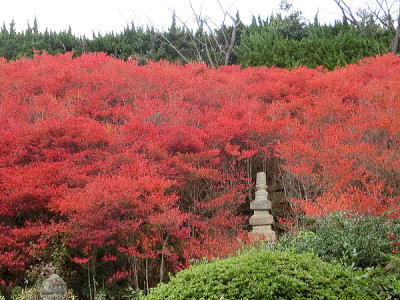 真っ赤な三門 いつも門は閉まっています。