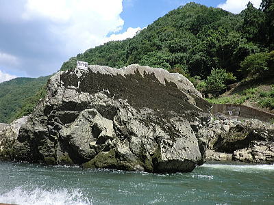 朝日の瀬 孫六岩が目の前に・・川面に波が立ち