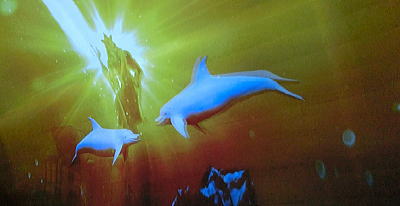 頭はワニ 胴体は蛇 足は猛禽類 角は鹿 色んな動物を合体させて描かれているようです。左側から見ると昇り竜、